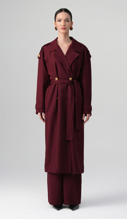 Rubina Yaka Detaylı Elbise Bordo