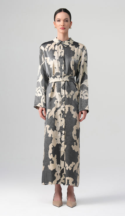 Virella Desenli Elbise Siyah-Bordo